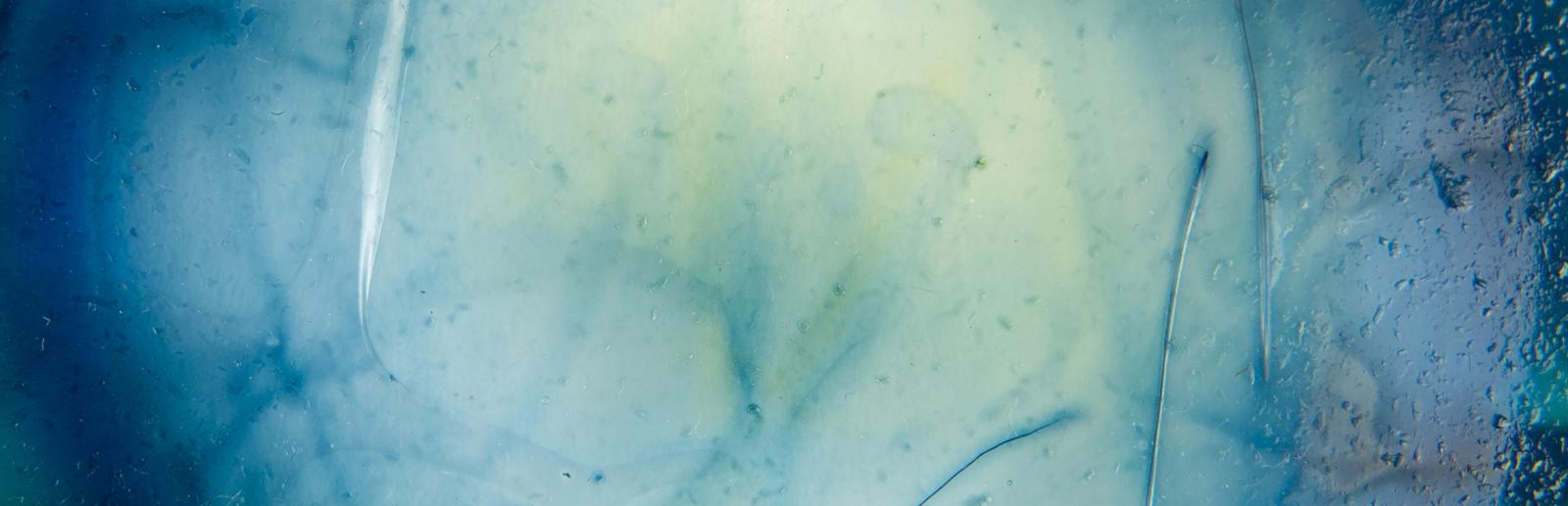 Et si le pli avait été confié à la Seine dans une Boule de Moulins ? Anaïs Tondeur part sur les traces de l’une d’entre elle, dans les replis de la Seine. L’installation met en avant une image exposée sur une surface composée à partir d’algues du fleuve et exposé dans une boule de Moulins transformée en sténopé  (Chapitre 2 : Confié à la Seine).